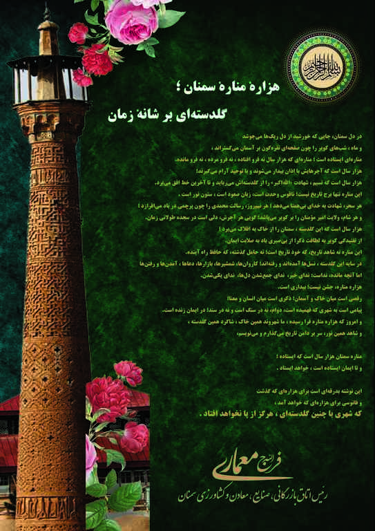 و امروز که هزارهٔ مناره فرا رسیده، ما شهروند همین خاک، شاگرد همین گلدسته، و شاهد همین نور، سر بر دامن تاریخ میگذارم و مینویسم،